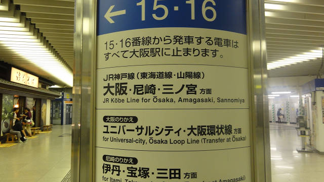 大阪駅を素通りして、新大阪駅にも行きました。大阪方面にJR神戸線の文字が・・・