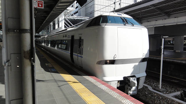 同じく福知山線を通る特急こうのとり。 同じデザインの車両で、和歌山方面に行く特急「くろしお」は、大阪駅を通らず、新大阪から梅田貨物線を経由して大阪環状線に入ります。