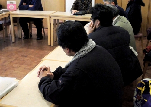 갬블 의존증으로의 회복을 목표로 하는 그룹에서, 서로의 체험담을 이야기를 주고 받는 참가자들=도쿄도 치요다구