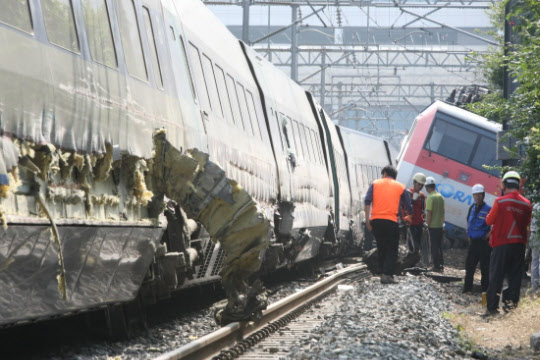 事故は去年 8月 31日午前 7時 14分テグ駅で発生した. 上 · 下行 KTX 列車とソウル行無窮花号列車が 三重追突する事故が発生したこと. プラットホームに停車の中だった無窮花号列車が出発信号より早く出発しながら当時駅を無停車通過したソウル行 KTXとぶつかったのだ. このソウル行 KTXがまさに KTX 33号だった. KTX 33号は無窮花号列車と衝突した衝撃で横に傾いたし、ちょうど向こう側から来た釜山行 KTXを突き飛ばした. 釜山行 KTXは KTX 03号だった.