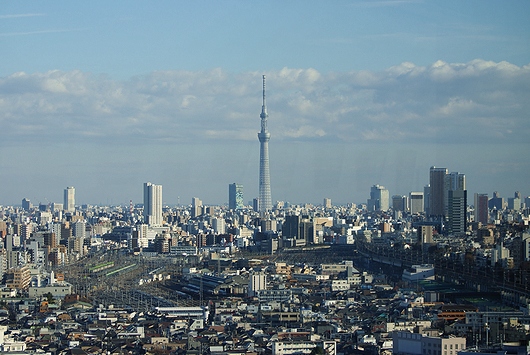 南東には、北とぴあと同様に貨物駅跡地に建てられた東京スカイツリーが見えます。