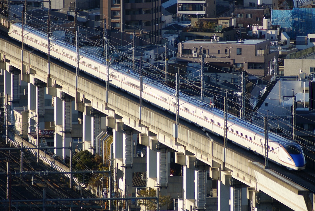 죠에츠 신칸센 E4계( 신도장)+E4계( 구도장) 「Max에가 원 415호」에치고 유자와행과 토호쿠 신간선 E5계 「매 18호」+아키타 신간선 E6계 「미인 18호」도쿄행이 엇갈려서 갑니다.신간선 최대 영업 정원을 자랑하는 16 양편성과 신간선 최고 영업 속도를 자랑하는 17 양편성의 엇갈림은, 봐 참아가 있습니다.