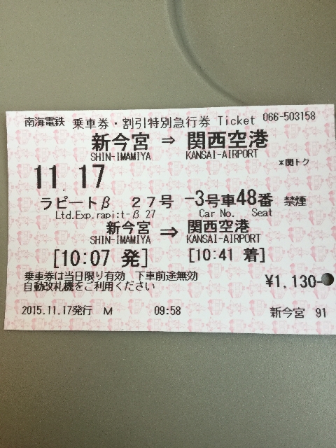 関空へはJRでも南海でもいいのだが、いったん乱れると再開・回復が遅いJRは毎回避けている。