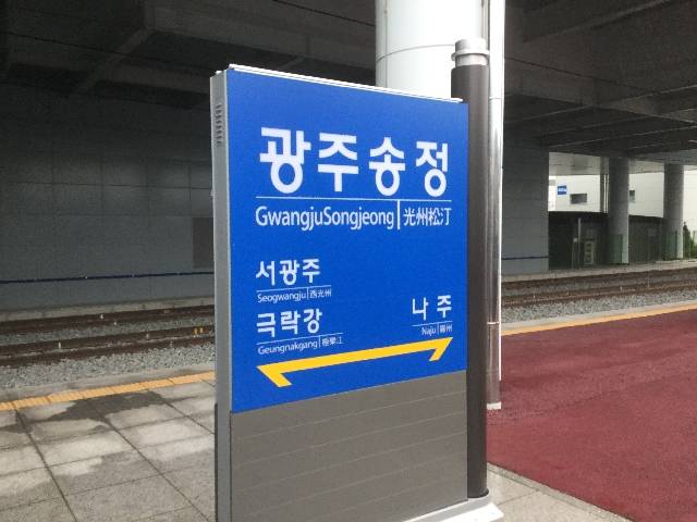 光州空港を横目にしながら12:40、ほぼ定刻でようやく光州松汀駅到着。釜山から337.1kmの鈍行旅行がようやく終わった。