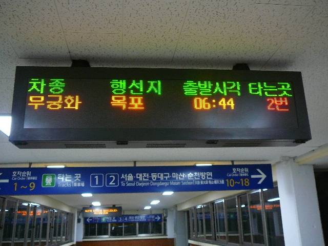 目論見通り亀浦では10分後に同一ホームで乗継ぎ亀浦6:44発の木浦行きムグンファに無事乗車。3両しかないが先頭の3号車に乗客が集中し、後ろ2両はガラガラだった。
