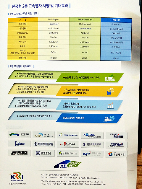 한국 철도 기술 연구원과 현대 로템이 개발하고 있는 2층건물 KTX에 대한 팜플렛인것 같다.