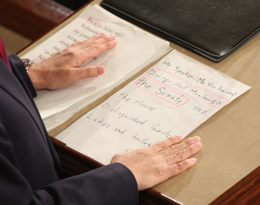 이 날, 아베 수상은 영어로 연설을 실시했지만, 월・스트리트・저널은 아베 수상이 손에 가진 원고를, 큰 사진으로 소개했다.원고에는, 「다음을 강하고」 등 억양을 붙이는 위치나, 휴식의 개소가 빨강 펜으로 써지고 있었다.