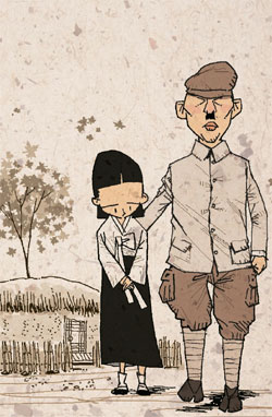 金鍾泌元首相が目撃した強制連行の現場のスケッチを元に描いた絵