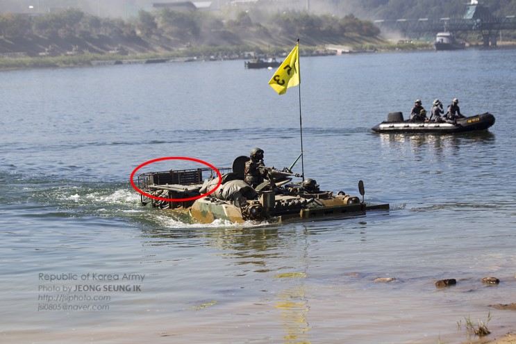 写真だけ簡単に見て行きます. 陸軍第11機械化歩兵社団の北漢江渡河訓練時戦闘識別版 (CIP)を附着した車たちが識別されて写真は何枚引っぱりました.