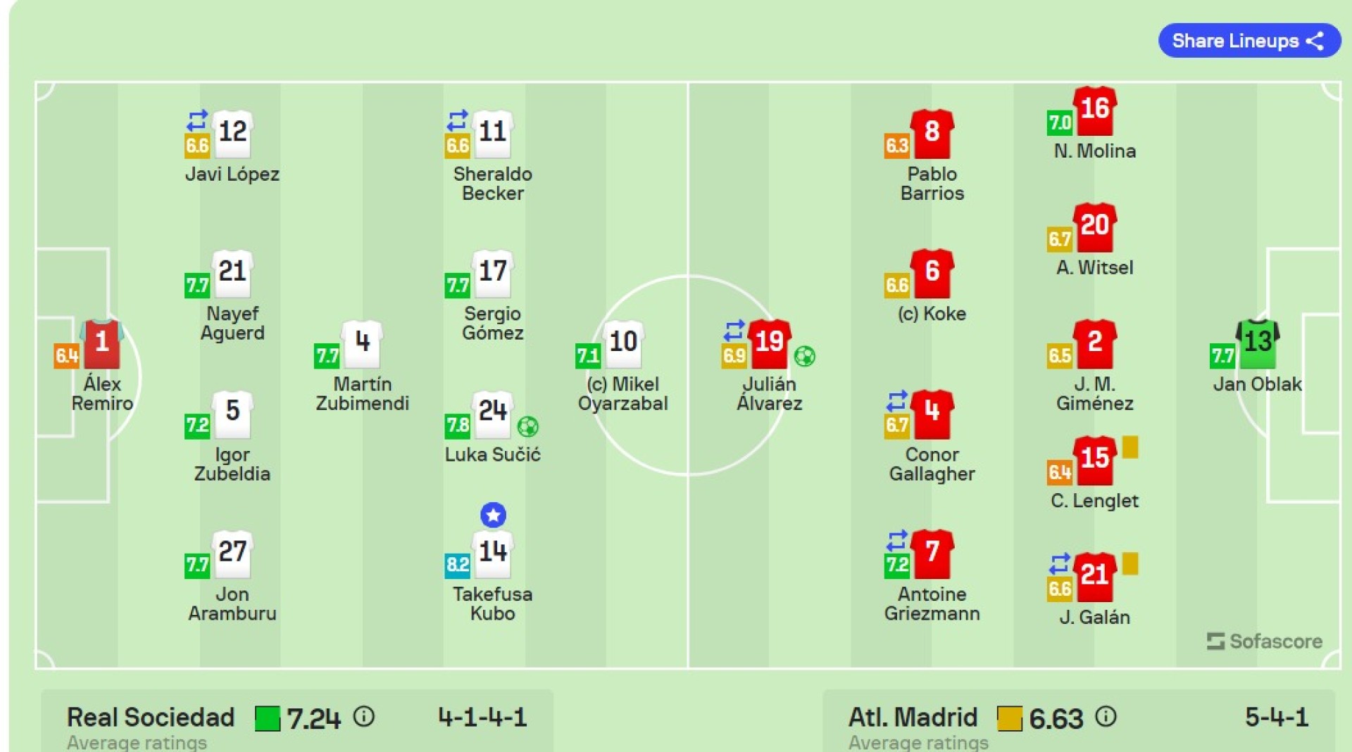 쿠보가 A마드리드전에서 MOM급 활약으로 최고점