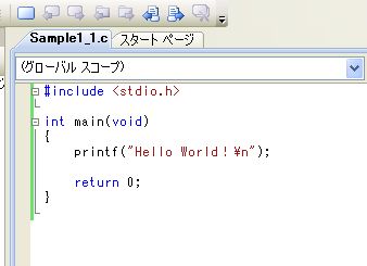 今回は「Hello world!」という文字を出すプログラムを作るで。前回出したソースファイルの中に下のソースコードを書き込んでいくんや。