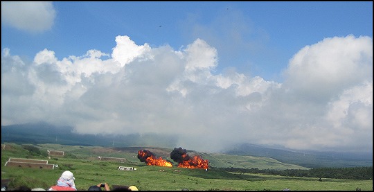 爆発で空中に富士山を描くと言うもので、見事でした(まるで花火w)。