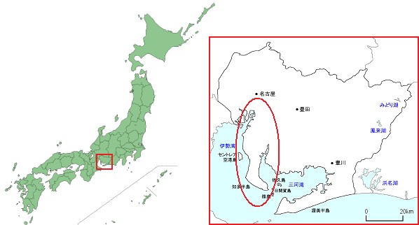 知多半島とは日本列島の中部の太平洋側にある小さな半島です(下図)。