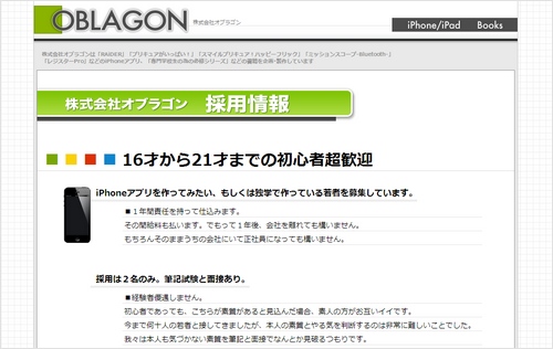 今回募集するのは、iPhoneアプリのエンジニア。といっても経験者優遇という事はなく、やる気と情熱があるなら初心者も大歓迎だそうです。しかも募集年齢は …16歳から!?