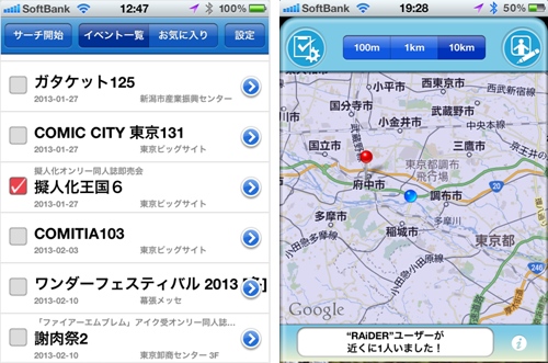 nakama searcher RAiDER 」は、アニメやコミック関連の公式・非公式イベント情報や、それらのイベントに興味を持っている同じ趣味の仲間を探せる、iPhone用の無料アプリです。