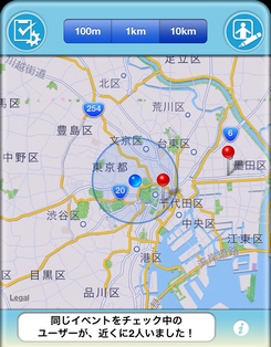 또 마음에 드는 것을 표시중에 「서치 개시」를 누르면, 주위에 있는 같은 이벤트를 체크하고 있는 동료가 지도상에 출현!