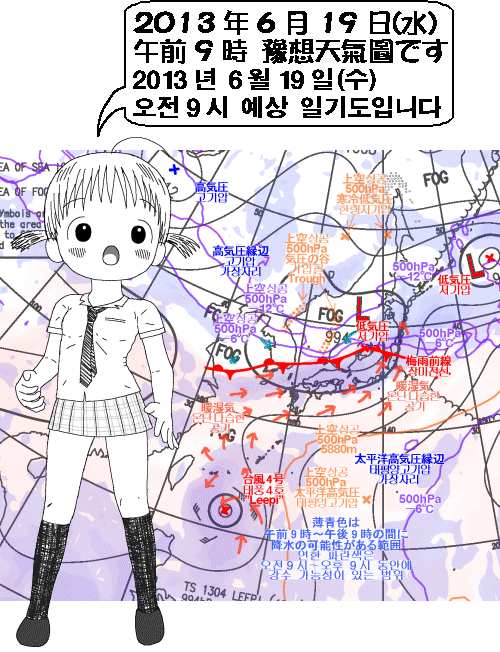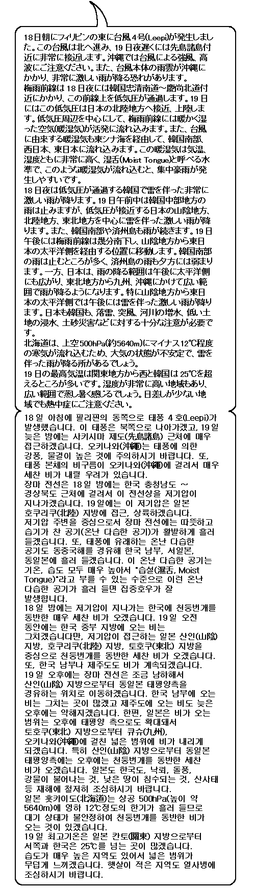 큰 비가 한국에서 일본에 이동하는 기상 정보입니다.