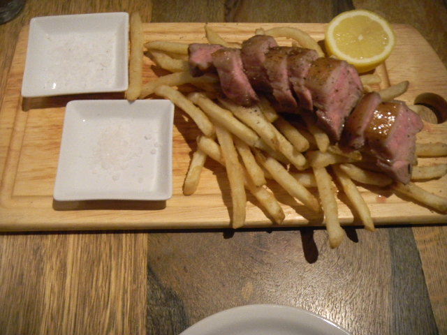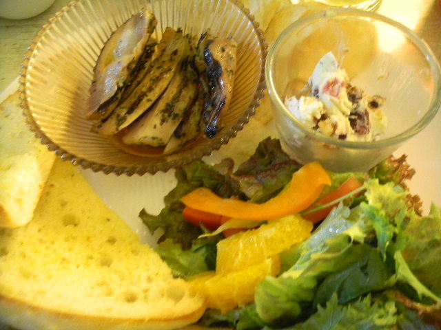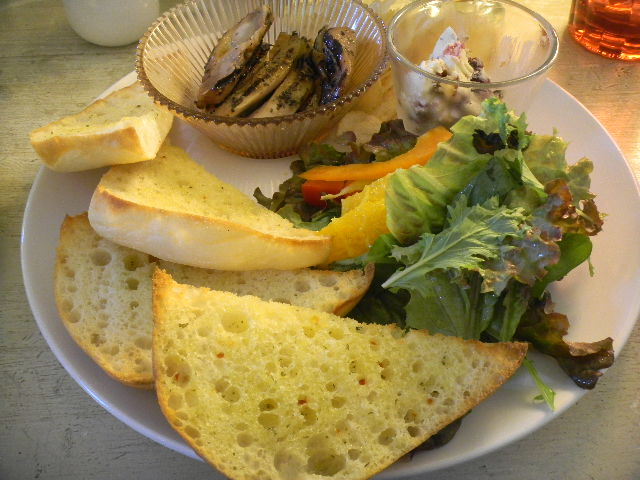 写真以下4枚。このレストランで食べた、この日の夕食。全て、二人で分けて食べました。なお、この時、このレストランでは、飲み物は、私は、主にワイン(wine)を、彼女は、主に、ノンアルコールカクテル(アルコール(alcohol)の入っていない、カクテル(cocktail))を、飲みました。