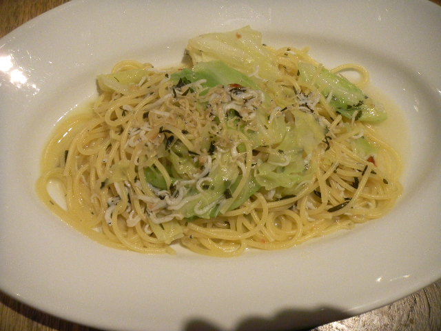 멸치새끼(정어리의 아이)와 해조, 양배추(cabbage)의 파스타(pasta).멸치새끼(정어리의 아이)는, 쇼난(syounan)의 명물(잘 잡히는 산물)이 되고 있습니다.