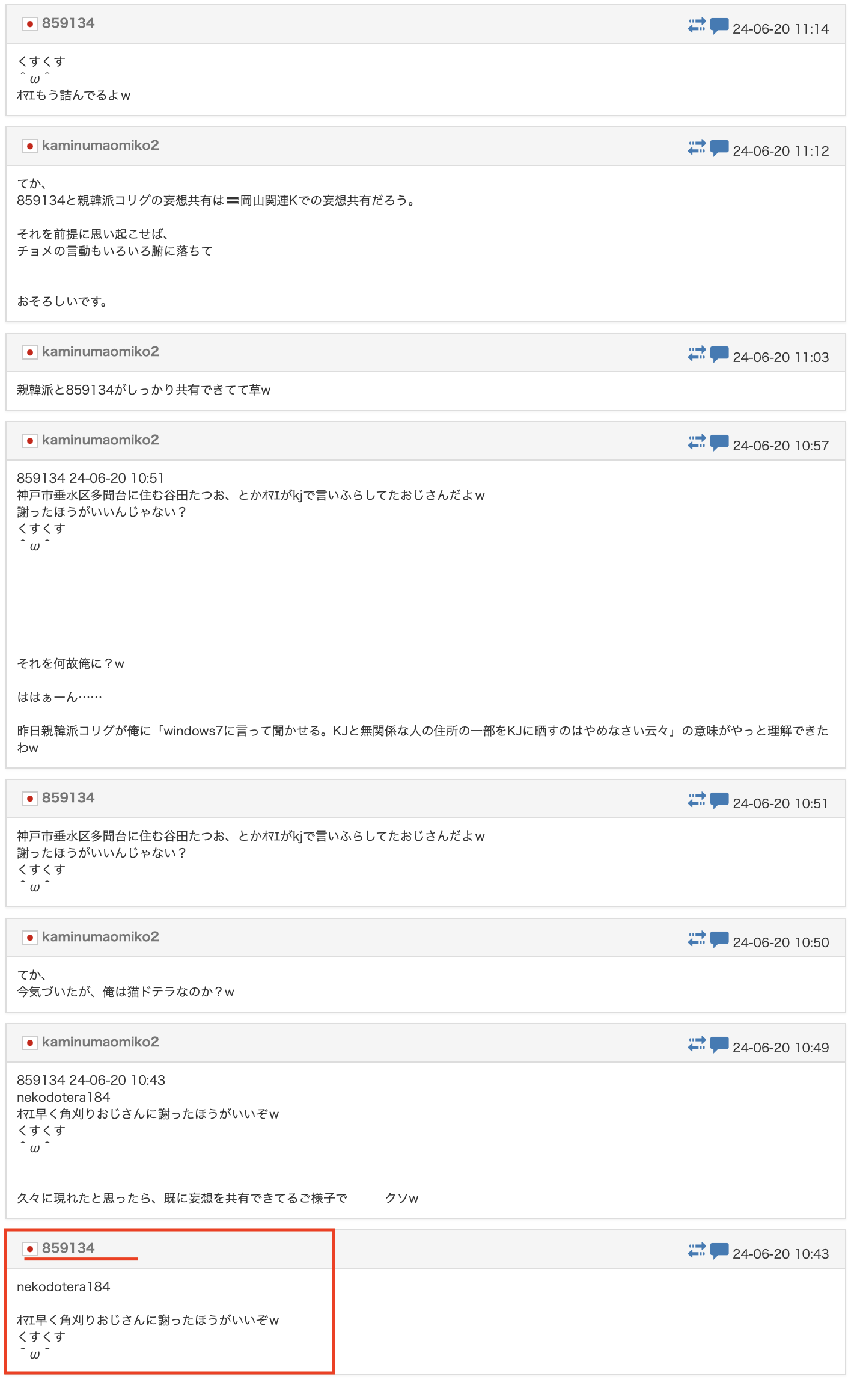 下記↓謎のID”859134”によるコメントに心当たりはありますか?