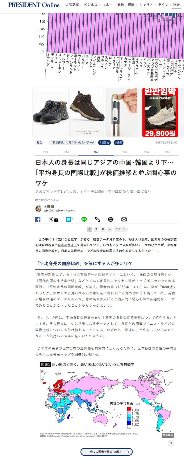 한국과의 국제 비교로 자신들의 신장의 낮음을 한탄하는