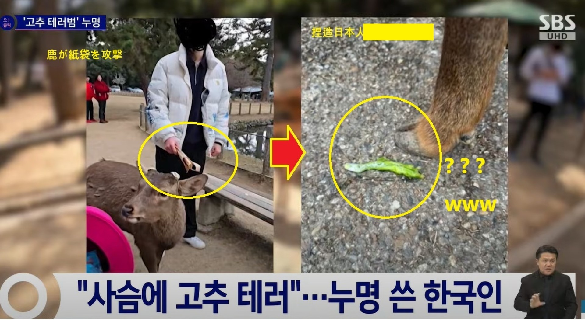 鹿が紙袋を攻撃したこと (問って取り離してしまい)...... 嫌韓倭人がこれを唐辛子テロで (写真編集)捏造して掲示物を拜