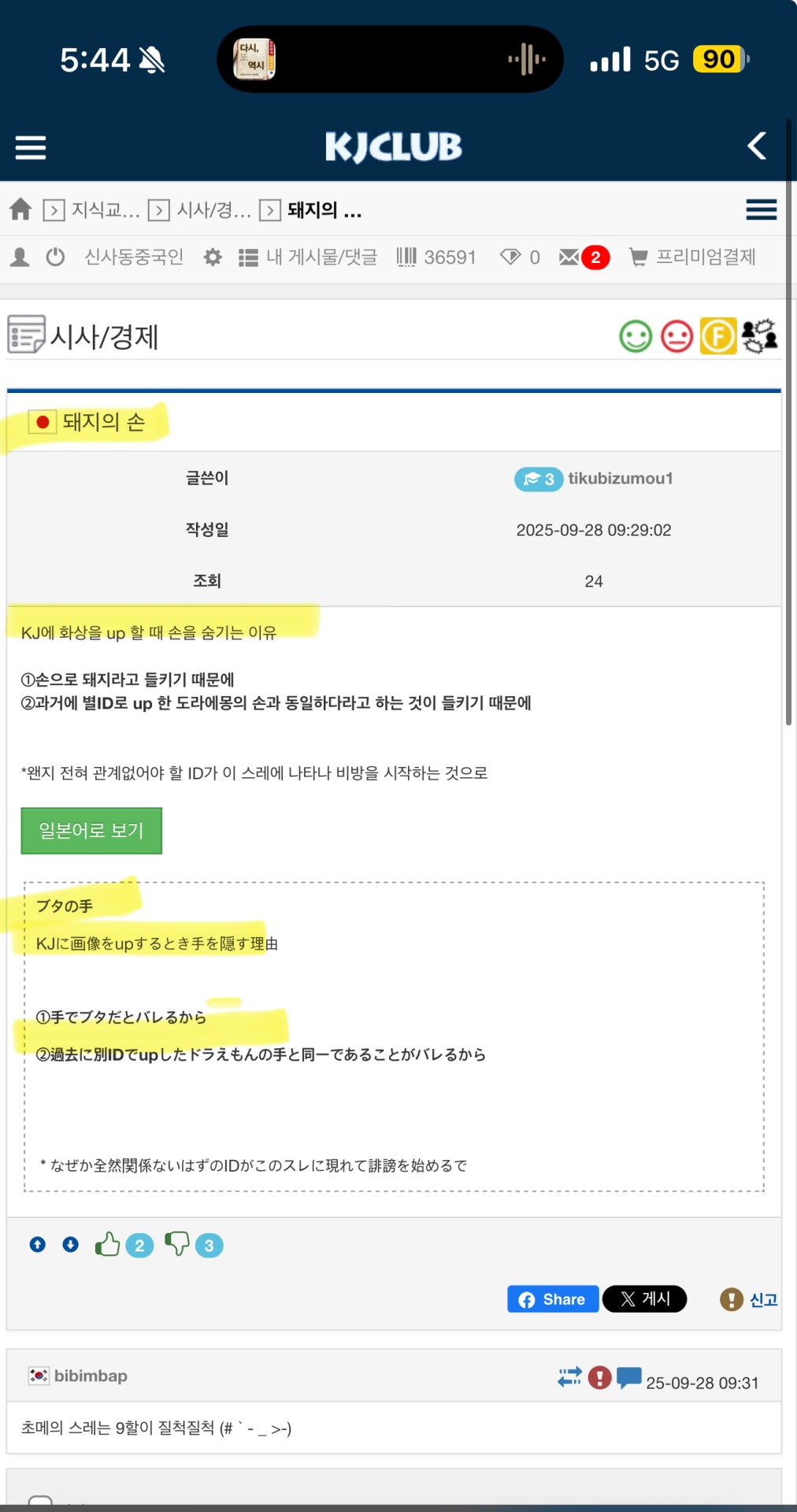 2764725 韓国人よ!安心してほしい。点を入....... 樺太州 18:18 32 2