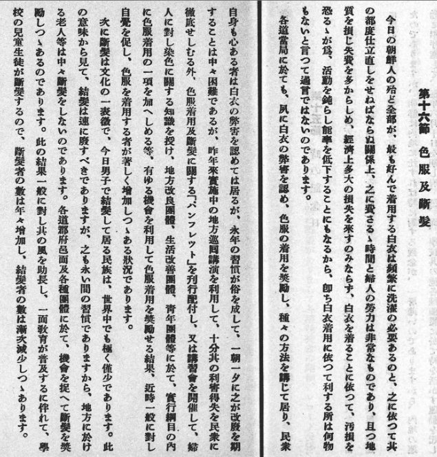 육위부@yukin_done무염색의 백복의 착용을 멈추도록(듯이)라고 불러 간 것은 조선 총독부이며, 각 도 기관을 통해 팜플렛까지 작성해 호소해 색옷의 보급에 진력한 결과, 간신히 보급했다.이와 같이 남자가 머리카락을 결우노도 멈추도록(듯이)와 재삼 지도하고 있었다. ※「조선의 사회 사업」조선 총독부 학무국 사회과 국립국회도서관창고 pic.twitter.com/LgzI0JfvpI