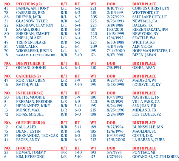 LA다저스가 내셔널 리그 챔피언 쉽 시리즈 로스터를 공개했다.