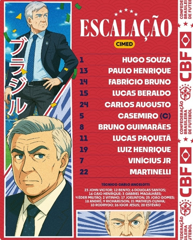 앞서 브라질은 지난 10일에 열린 `홍명보호` 한국과 평가전에서 5-0 대승을 거뒀다. 당시 카를로 안첼로티 브라질 감독은 최정예 멤버를 내세웠다. `원톱` 마테우스 쿠냐(맨체스터 유나이티드)를 비롯해 에스테방(첼시), 비니시우스 주니오르, 호드리구(이상 레알 마드리드), 카세미루(맨유), 브루노 기마랑이스(뉴캐슬) 등이 선발로 나섰다. 유럽 빅리그에서 뛰는 선수들 위주로 베스트11을 짰다.