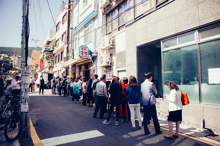 70년 전통의 돼지국밥 가게. 부산 凡一洞. 점심시간에 항상 웨이팅 줄