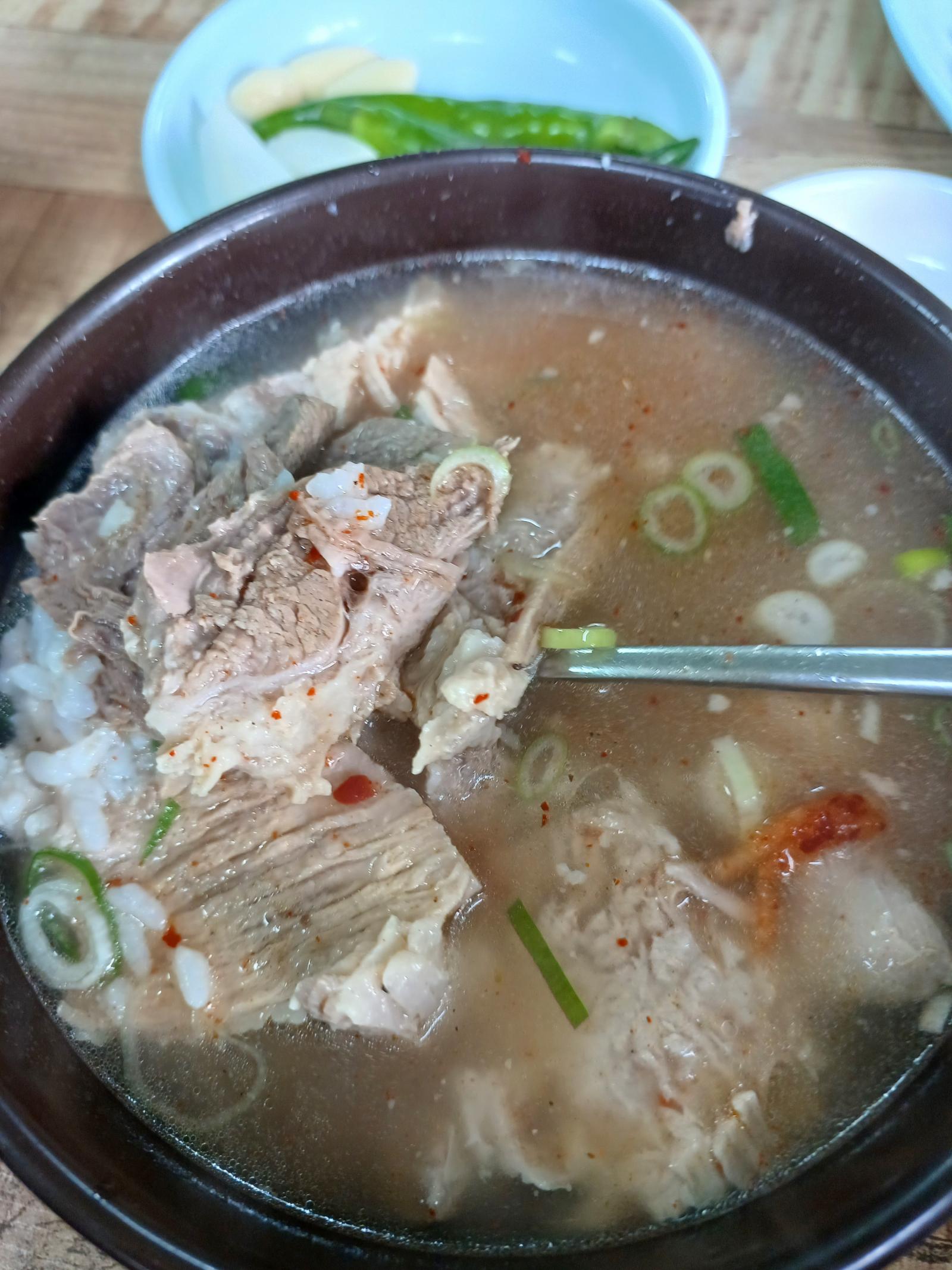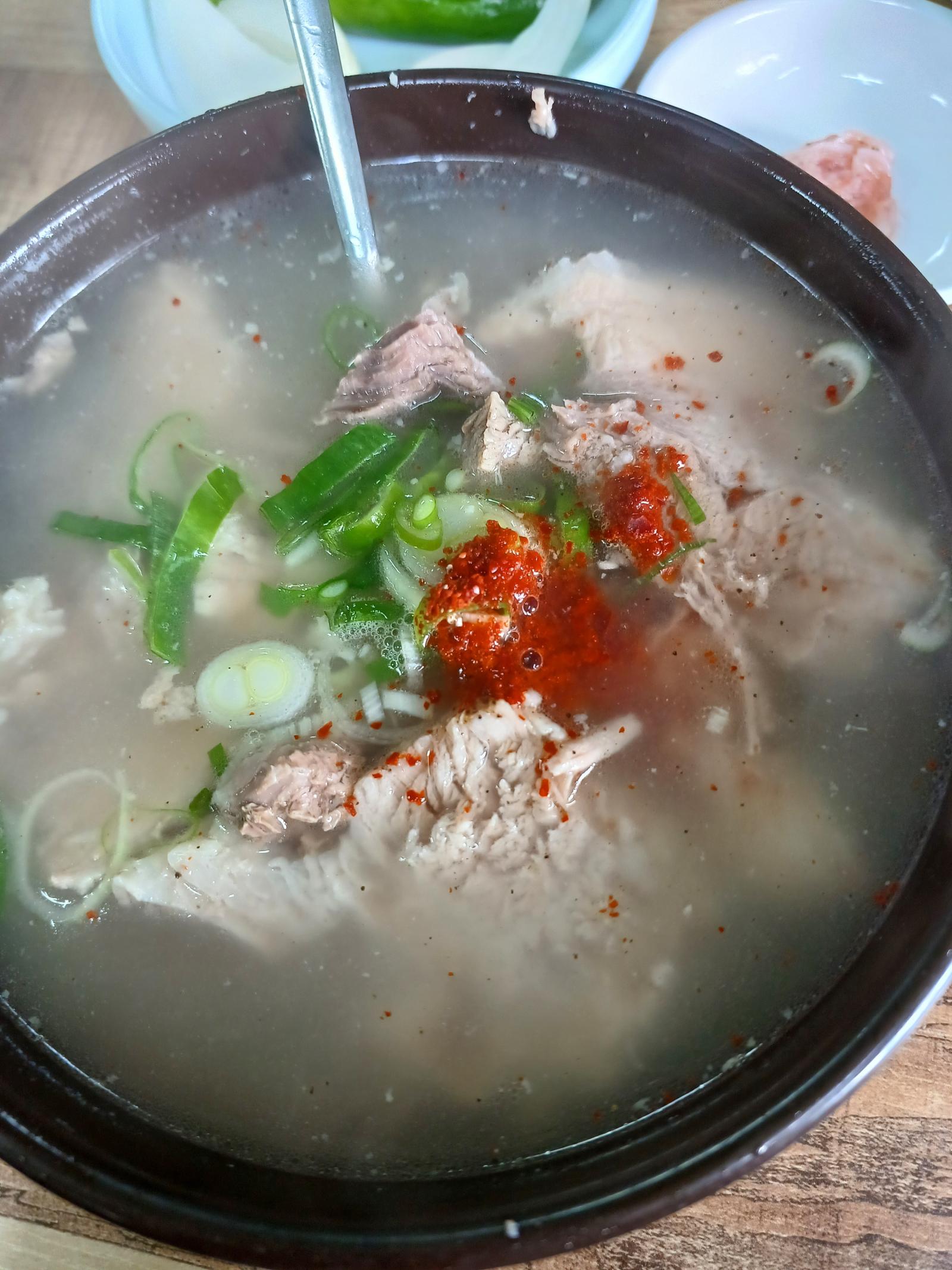 豚クッパ 8000ウォン. 清いおつゆ. 肉もたくさん入れてくれる.