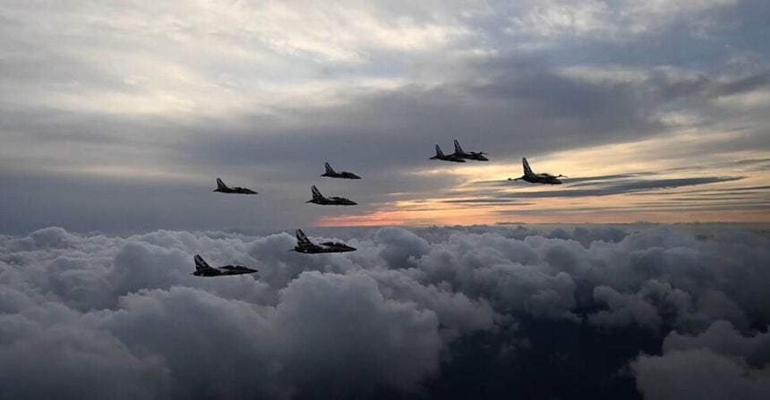 韓国空軍特殊飛行チーム `ブルレックイグルス`の飛行姿. ブルレックイグルスヌリジブガルムリ