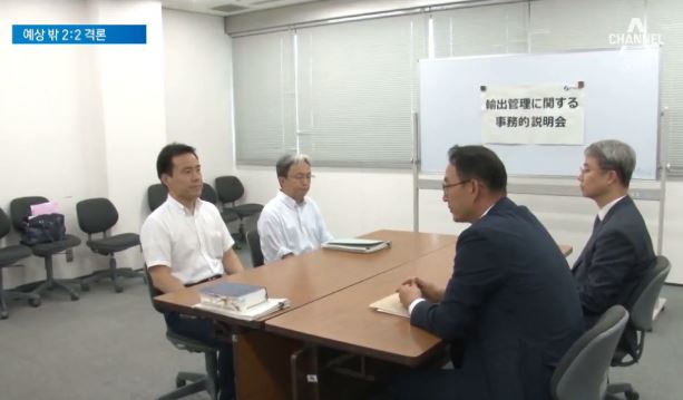 허름한 창고에서 예의를 갖추지 않은 복장으로 한국 대표단을 만나며 노려보던 열도 정부 관계자가