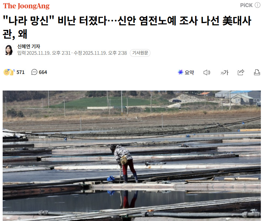 미국에서 전라도 신안 염전 노예 조사한단다.