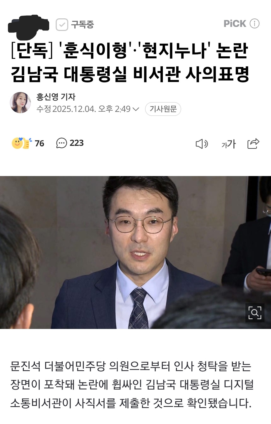 人事 청탁을 받는 장면이 포착돼 오늘 사의 표명.