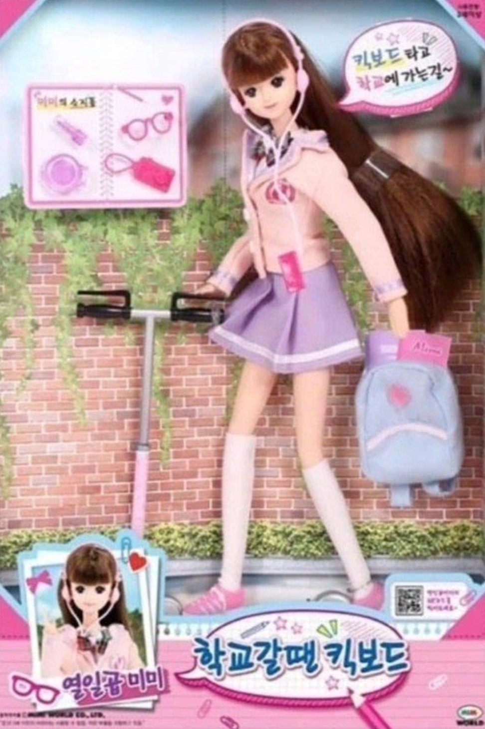 韓国で長く愛されている着せ替え人形「ミミ」。最近のミミちゃんは、おしゃれな制服を着てキックボードで登校するなど、現代的で可愛らしい日常を描いています。