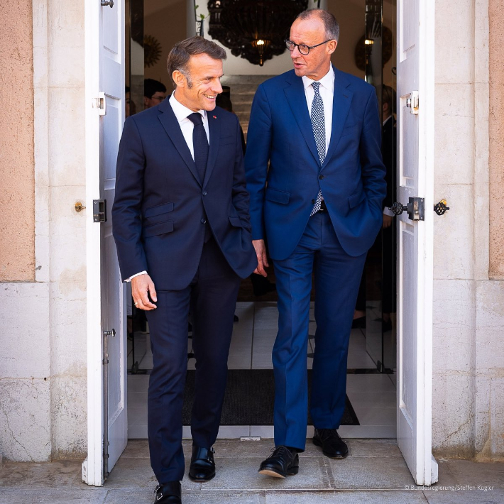 エマヌィへマクロングフランス大統領とフリードリヒメルツドイツ総理. メルツ総理エックス(X) キャプチャ