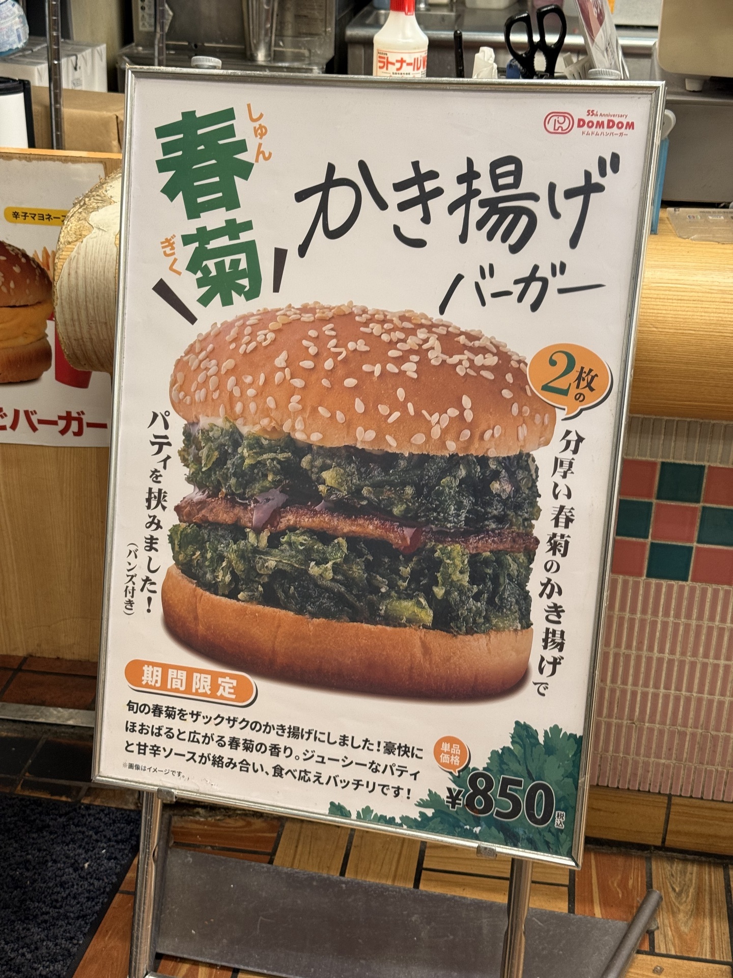 ドムドムバーガーの期間限定、春菊かき揚げバーガー