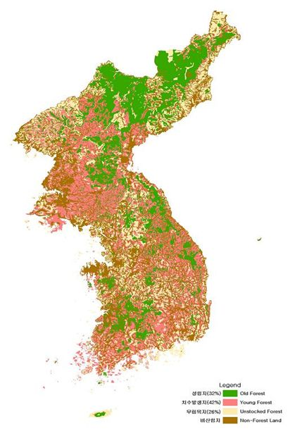 1.から出た日本が伐木した地域江原道高城郡は東側中央緑色 old fo.restに表示されている地域で 1.科 2.の内容は全然相反する内容ではないが, この日本人は知能の問題によって 2.が 1.の内容を駁する内容だと勘違いしてこんな偽りのスレッドを作成するようになったように見える.