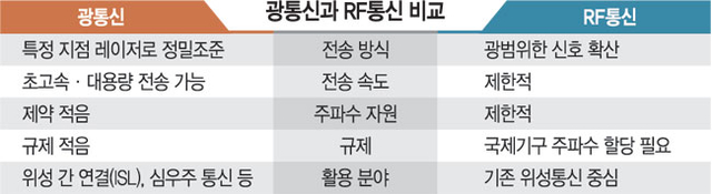 기존의 무선 주파수(RF) 통신의 한계를 넘은 차세대 우주 통신 기술로, 레이저 베이스의 광통신이 주목받고 있다.국내에서도 연구·개발(R&D)에 나섰지만, 아직 미국등의 선두 그룹과의 격차가 있어, 적극적인 투자가 필요한 상황이다.