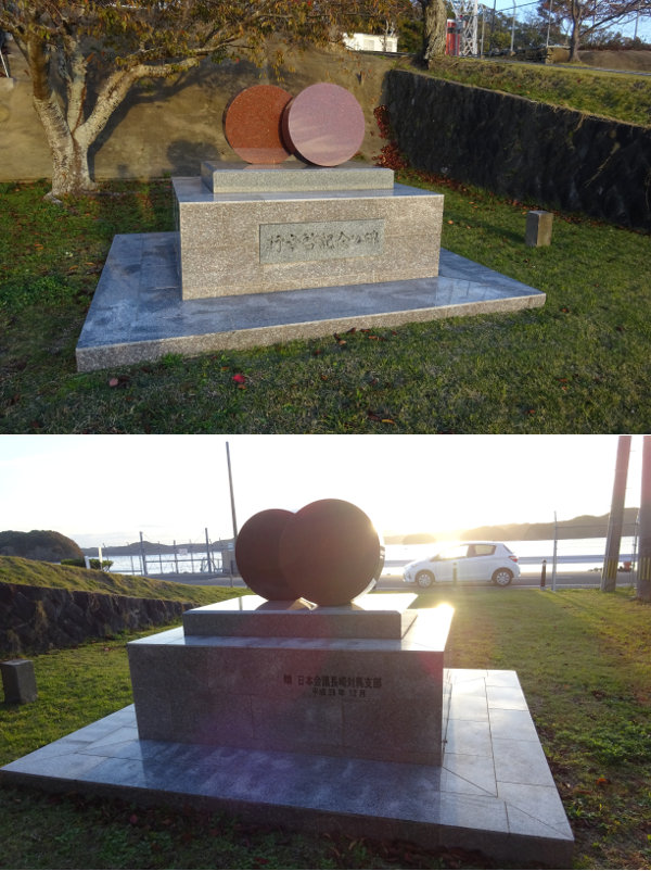 後から調べたら、このすぐ奥に自衛隊施設に隣接する朝鮮 人資本のリゾートホテルがあって、この碑はその敷地内からここへ移設してきたということのようで。