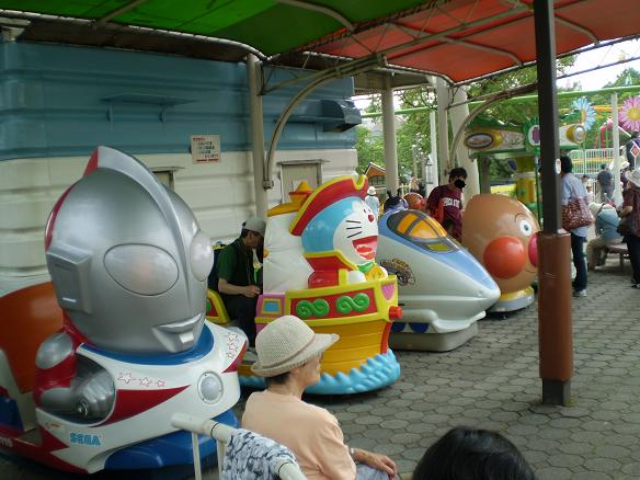 小さい敷地にもジェットコースターがあります。これは浅草花屋敷と同じ意味で怖そうです。この日は10分待ちくらいで乗れます。