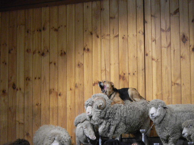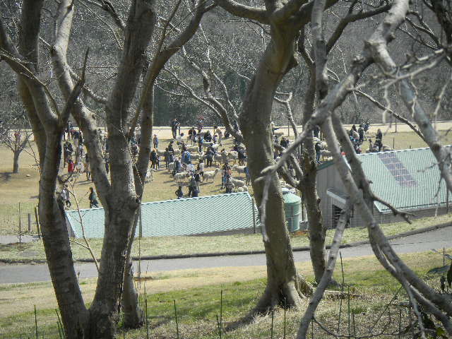 写真以下2枚。時間が、間に合わなかったので、羊の群れを牧羊犬(herding dog)が誘導するshowを、遠くから、眺める。。。調度、showが終わって、観客達が、羊達と、触れ合っている所。。。