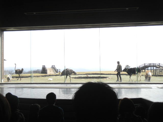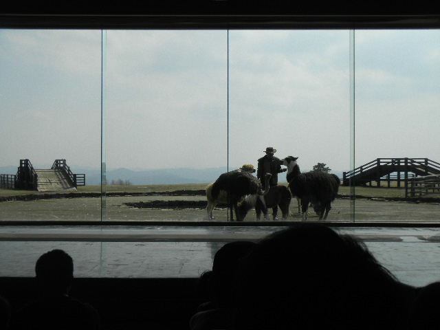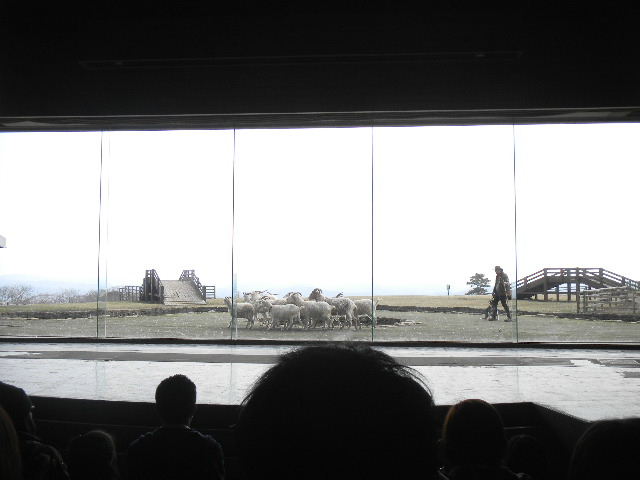 写真以下6枚。前の人達の頭が邪魔ですがw、牧場の仲間達show(マザー(mother)牧場で飼育されている、多様な動物達を、紹介するshow)。