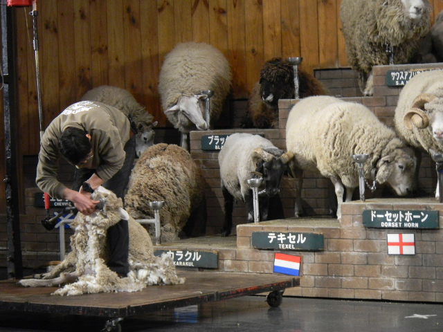 写真以下19枚。多様な羊を紹介し、羊毛(羊の毛)を刈る作業を実演する(見せる)show。