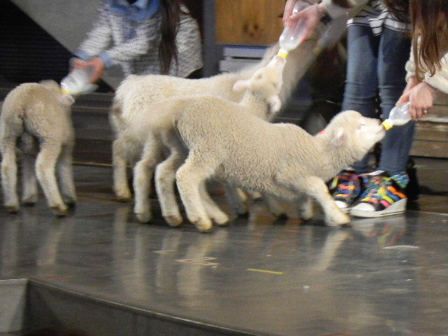 これは、彼女が、撮影した写真(私よりも、彼女の方が、構図等、写真の撮影が、上手いですw)。観客の内、希望者は、子羊に、ミルク(milk)をあげる事が出来ます。