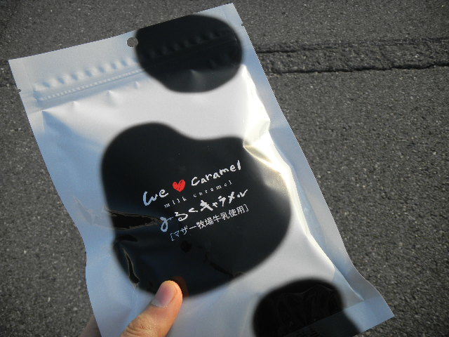 この時、マザー(mother)牧場で買った物の一つで、自動車の中で食べた(この日に、全部、食べた訳ではありませんが。。。)、マザー(mother)牧場の牛乳を使って作った、マザー(mother)牧場製の、ミルク(milk)キャラメル(caramel)(caramel candy)。彼女と選んだ物。初めて買いましたが、大した味ではありませんでしたw