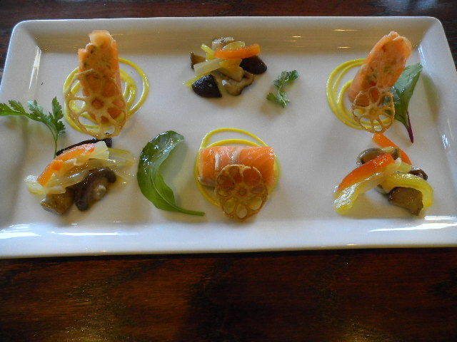 彼女が食べた前菜。鴨(鴨肉)と野菜の、フリカッセ(fricassee)。