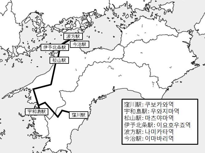 우와지마역으로부터 특급 우와해를 타 마츠야마역을 목표로 합니다^^